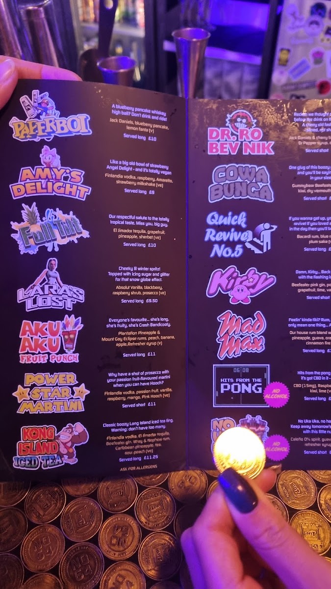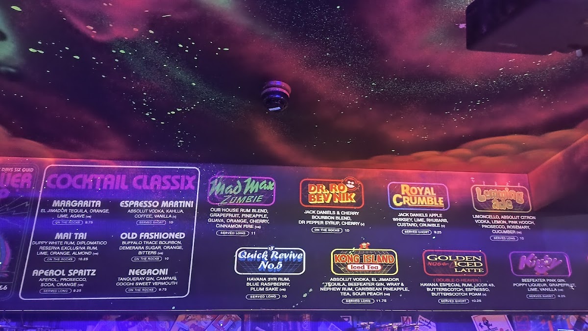 NQ64 Arcade Bar in Cardiff offers a delightful fusion of nostalgic arcade games and a vibrant bar atmosphere. Located at 60-61 St Mary St, this venue serves an impressive selection of bottled beverages, including Heineken, Red Stripe, and an array of craft options like Beavertown and Magic Rock. For those who prefer cocktails, highlights include the indulgent Espresso Martini, refreshing Aperol Spritz, and unique concoctions like the Super Coco Ball. Guests rave about the friendly staff and lively ambiance, making it an inviting spot for socializing with friends. With a range of arcade classics and modern games in excellent condition, NQ64 promises a nostalgic yet exhilarating experience. Whether you're sipping on a crafted cocktail or enjoying a cold beer while reliving those childhood gaming memories, this Cardiff gem guarantees fun and unforgettable moments.